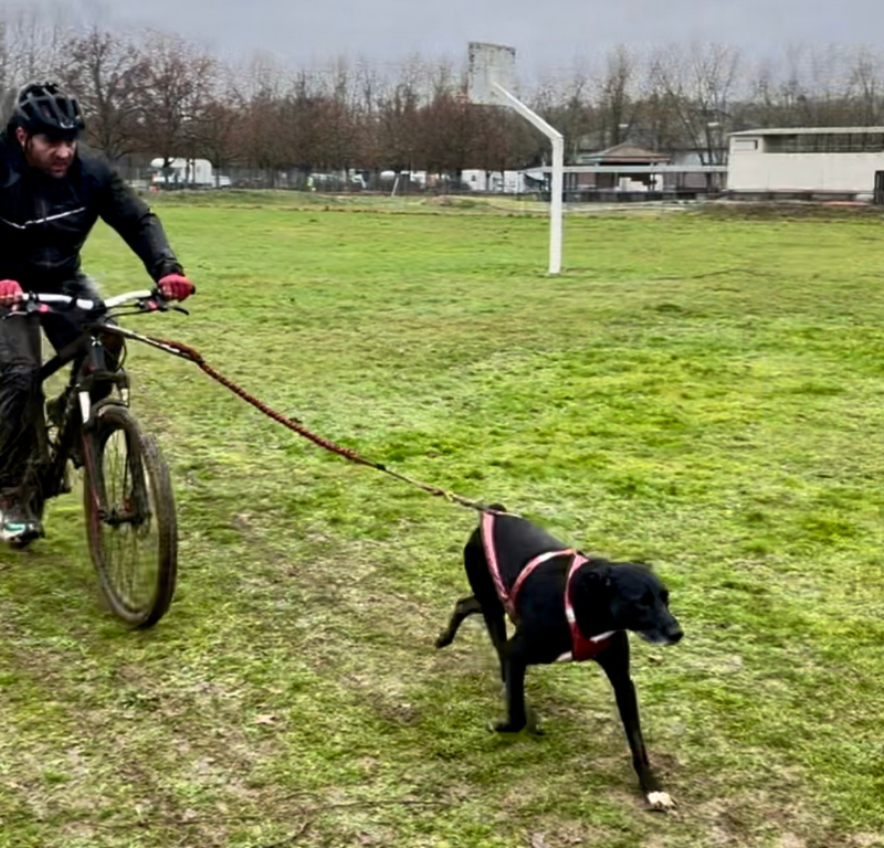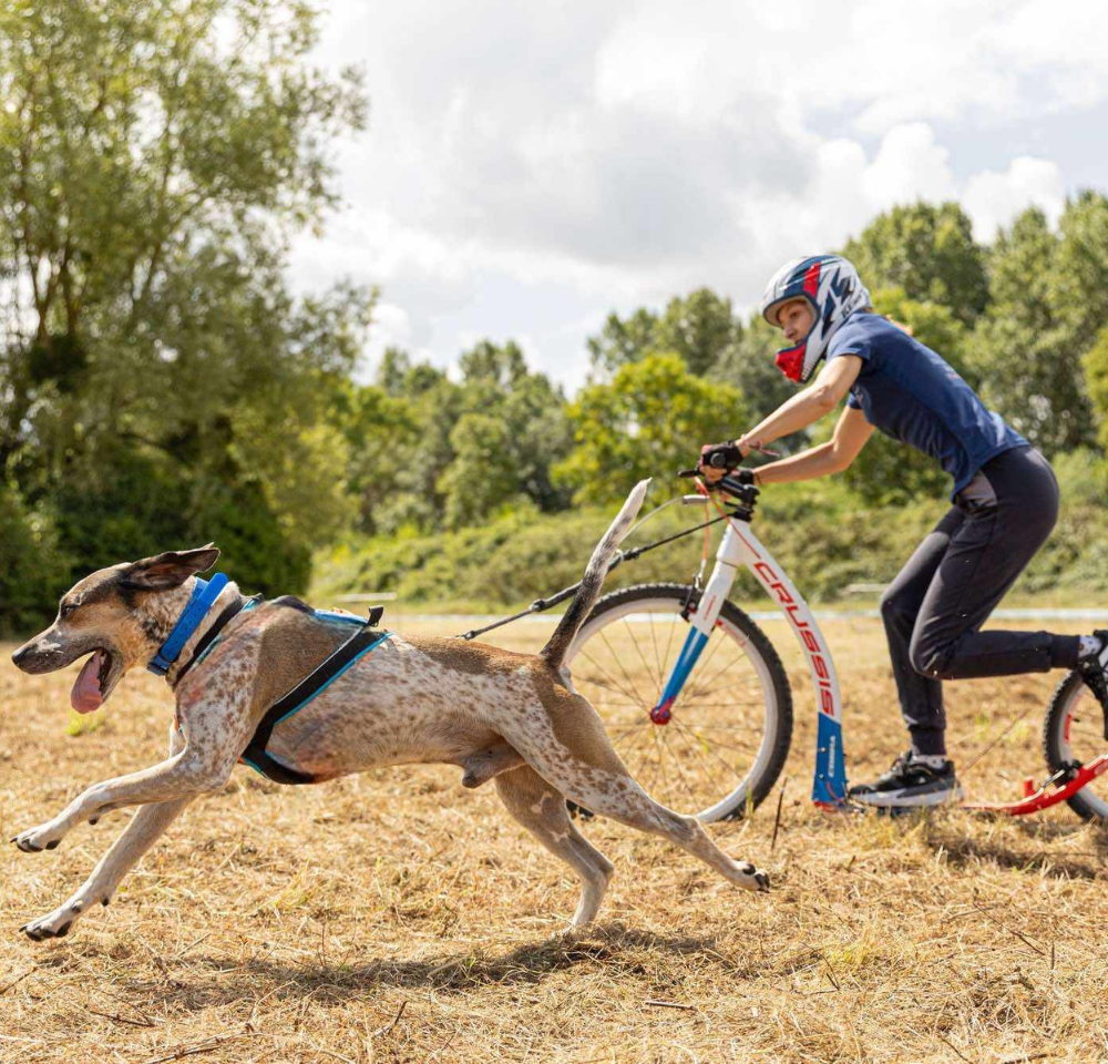 Le chien est relié au VTT par une longe de 1m50 à 2m maximum.