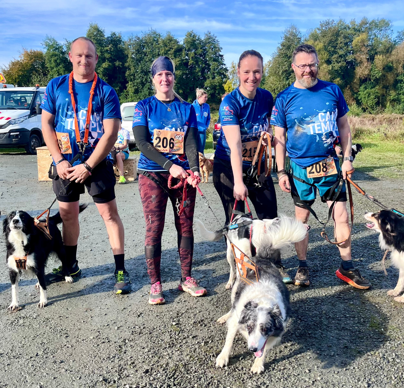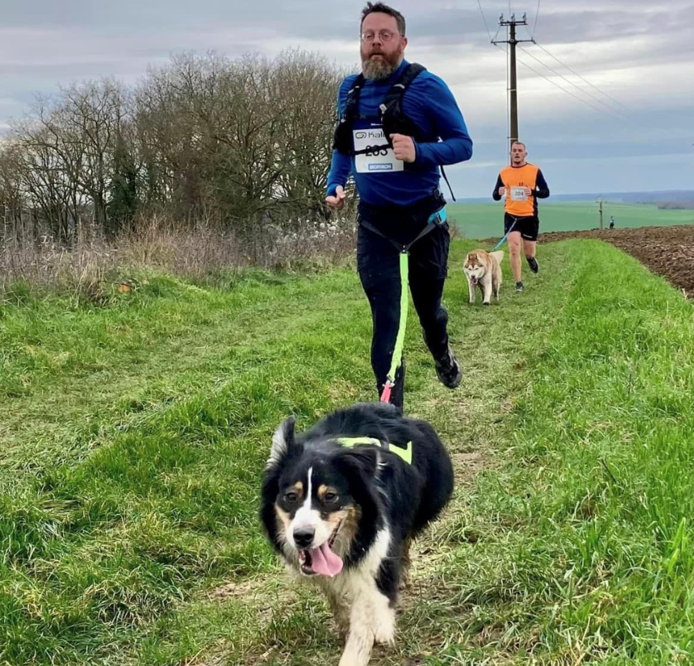 Le Canicross est une course à pied, coureur et chien sont reliés par une longe avec amortisseur.